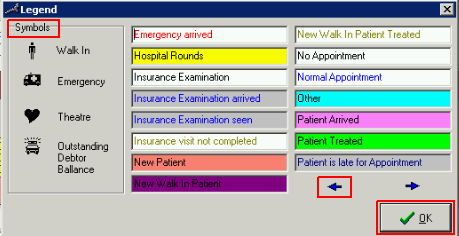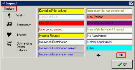 - The following Appointments in the Diary have different "Statuses". You can see this in their different Colours and Symbols.