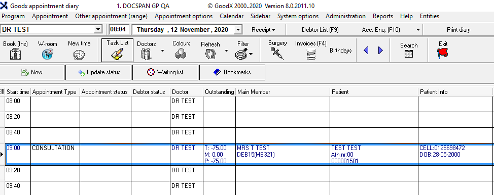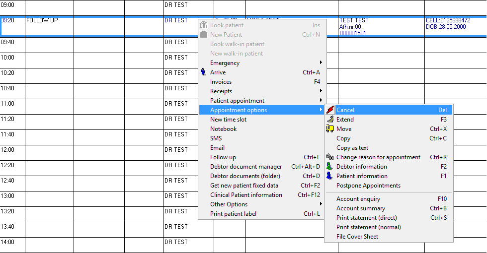 A time slot can be deleted with an existing booking, but make sure not to delete an important booking. If the patient has arrived, the time slot can not be deleted.