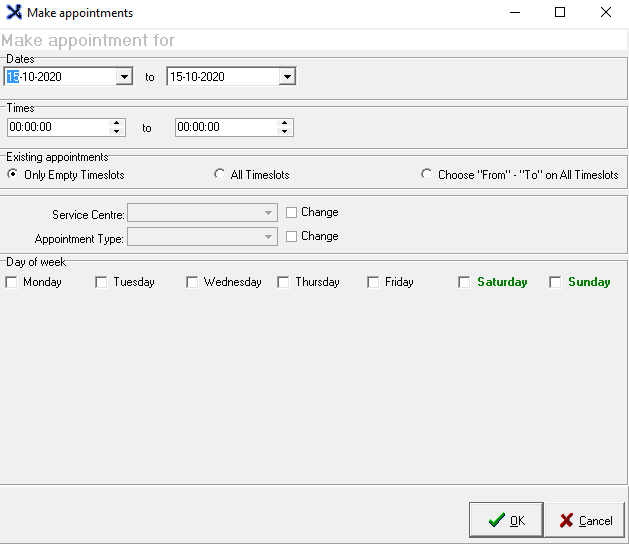 Only Empty timeslots: Will only apply changes to empty appointment timeslots with no appointments, on the diary screen