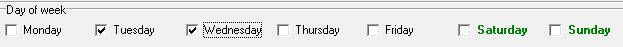 The user can choose on which days the practice would like the settings to be applied as a default ( in this case on Tuesdays & Wednesdays)
