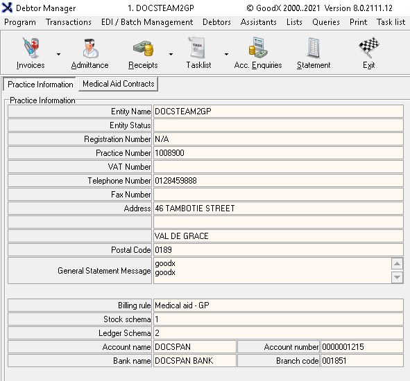 A Non-medical Debtor is a Debtor that is not a Patient but needs an Invoice or Statement for the other service rendered to the company or Patient. Normally a non-medical Debtor can be used when the user owns a building and rents out the offices or rents out equipment, or when they render services to someone else.