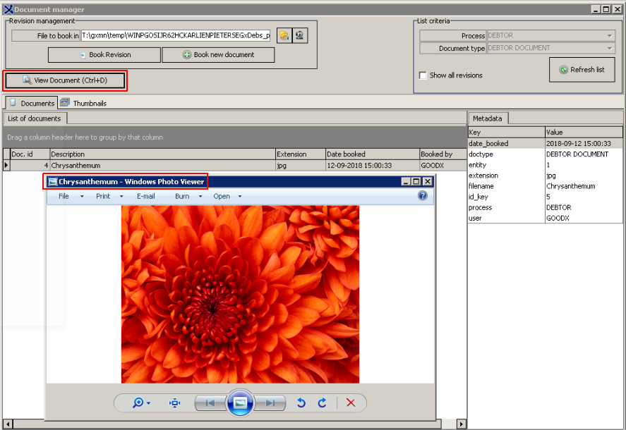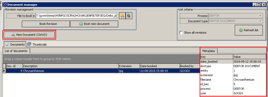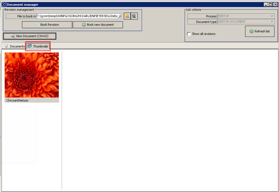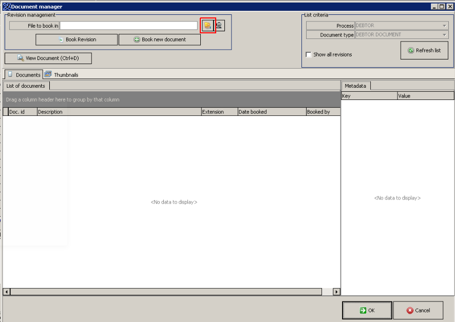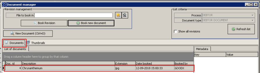 - Click on "Book new Document" button to upload the Document into the Debtors file