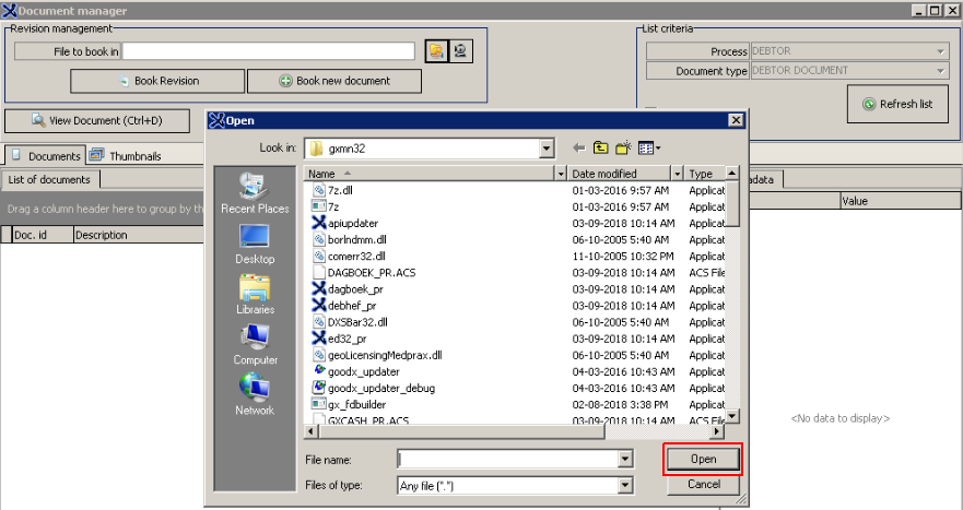 - The Document Manager screen will open