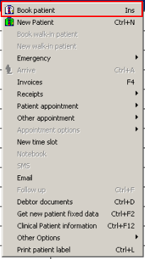 - Click on Book Patient (Ins is the keyboard shortcut)
