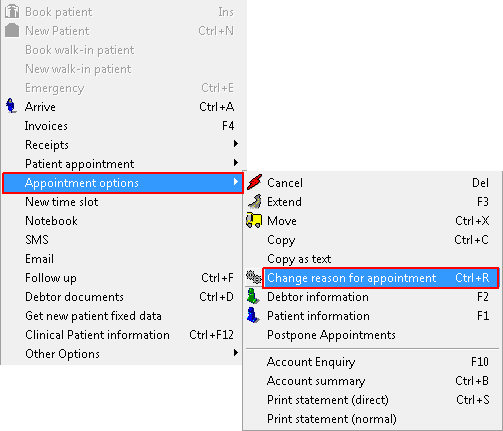 • Click on Appointment Options and select Change Reason for Appointment.