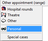 Business requirement: If you want to create multiple bookings for the medical practitioner to organise his diary, you can use the Range of Appointments function. The Range of Appointments can be used to book regular hospital rounds, theatre bookings, lunch times (choose the "other" option), leave (choose the "personal" option) for extended periods of time or for the whole year.