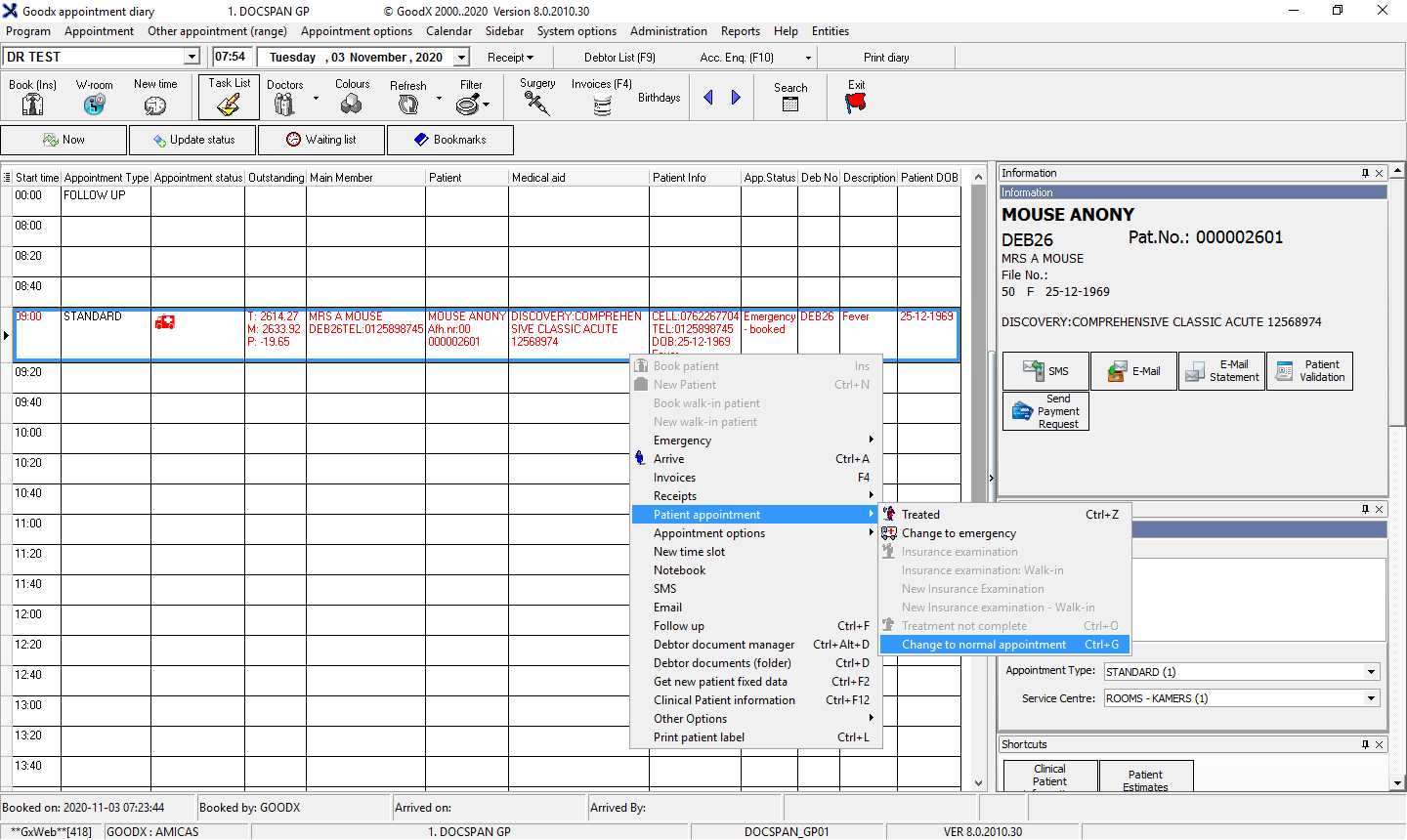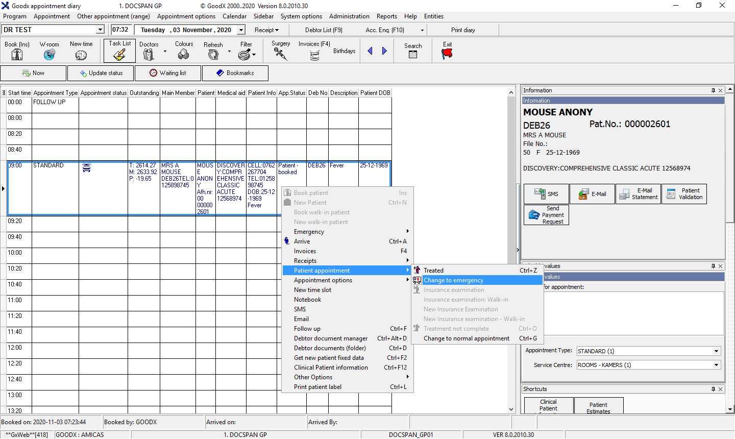The Appointment will be changed from Emergency to Normal on the Diary. You will see that the Status changed toPatient - booked