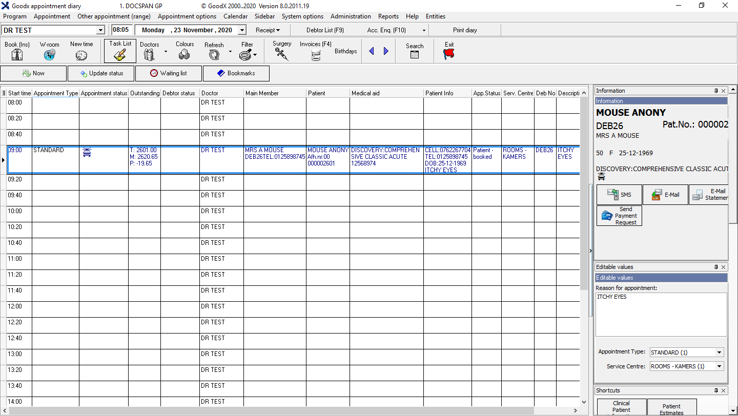 From the Diary, select the Patient's booking that you want to change by clicking on it: