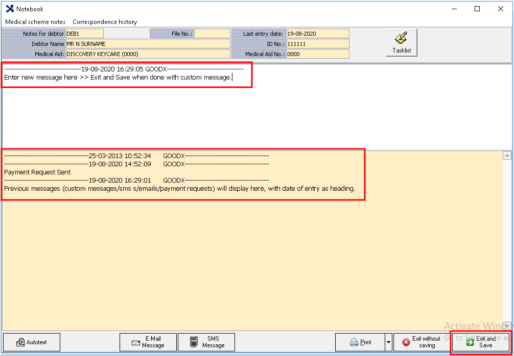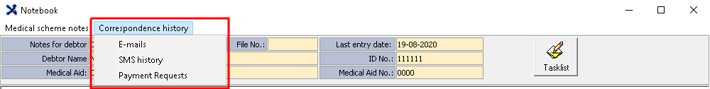 The Notebook is used internally to keep track of Accounts. Payment Requests, Notes, SMS's and Emails sent to debtors can also be logged in the Notebook.