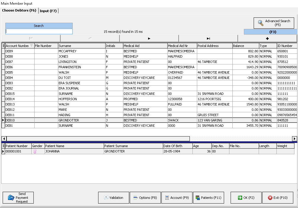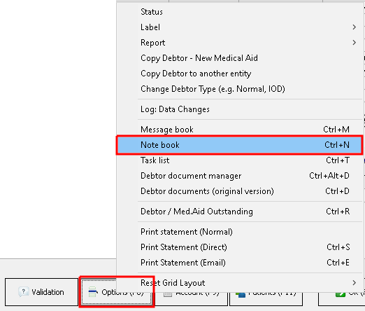 With the relevant debtor selected, click on the Options buttons at the bottom of the screen.