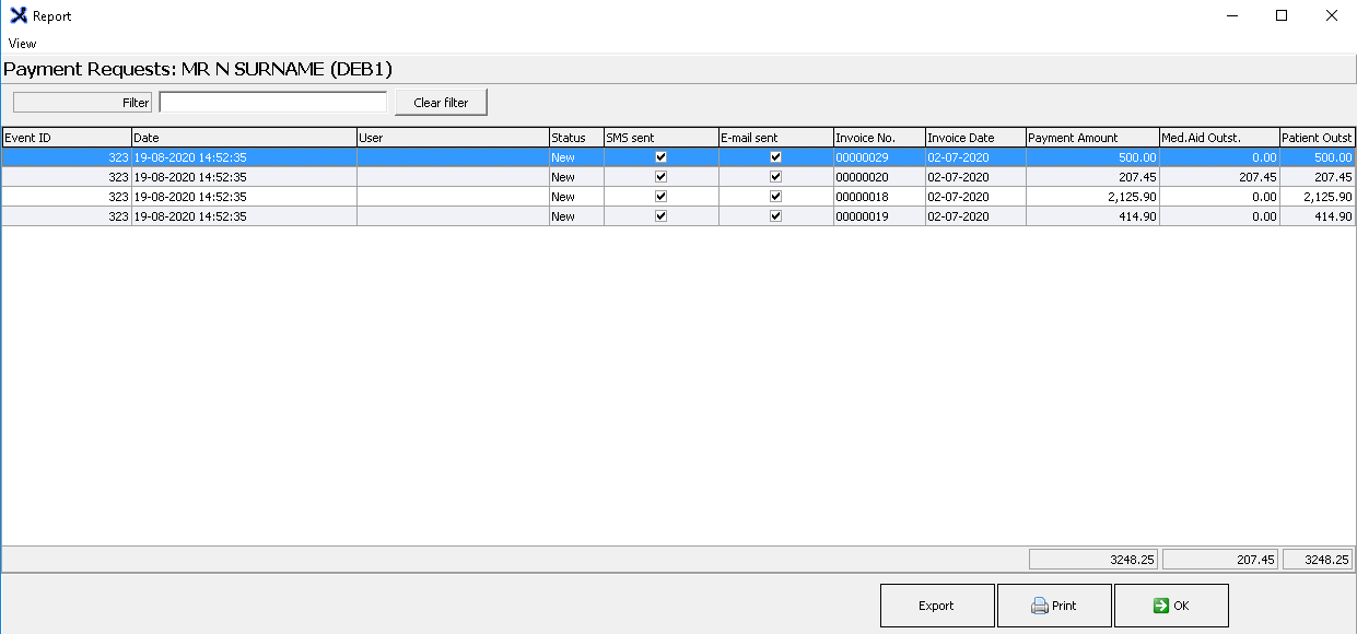 Example of Payment Requests Correspondence history: