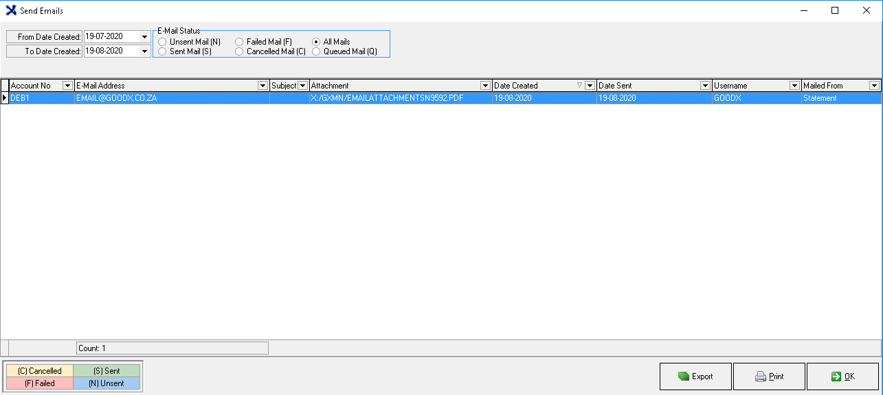 Correspondence History: You can view your E-mail, SMS and Payment Request Correspondence History for the debtor under this option. All previous correspondence will display here. See the examples below.