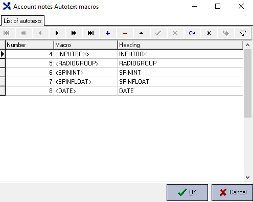 Shows a list of all the Auto text you have set up, with options to group your macros under relevant lists and also allows you to set up the Auto text by creating auto text macros