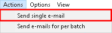 - Click on Actions on the menubar, then click on Send Single E-mail on the sub-menu. This will allow the user to re-send a single unsent E-mail. An unsent E-mails' status will change to sent when the E-mail has been sent successfully.
