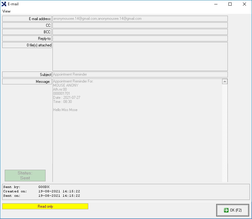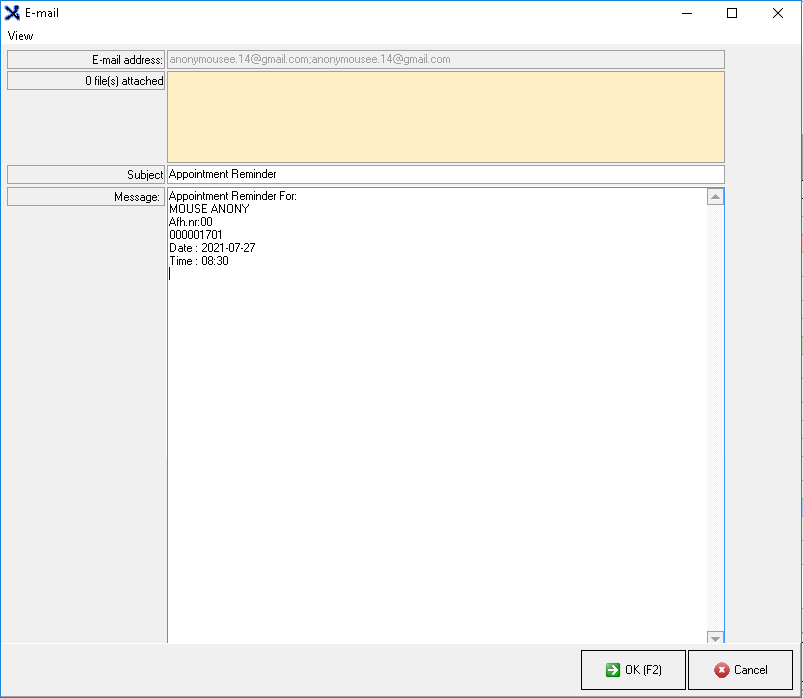 - Click on OK(F2) or press the F2 key on the keyboard to send the E-mail.