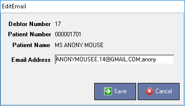 - Username: The name of the user who sent the E-mail to the debtor/patient.