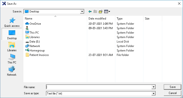 - Save as Type: The type of file that will be used to save the E-mail History on the user's computer.