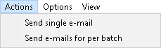 - Click on Actions on the menu bar, then click on Send E-mails for per batch on the sub-menu. This will allow the user to resend an entire unsent E-mail batch.