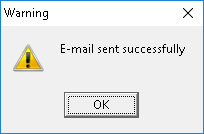 - Once the message has been sent, a Warning pop-up will appear to advise the user whether the email has been sent successfully.
