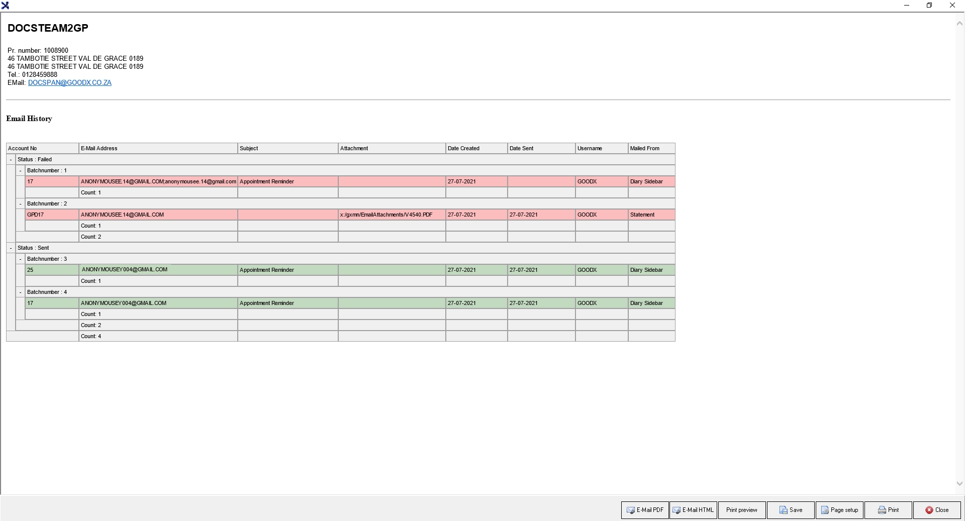 - Click on Print to print out the history of the E-mails that was sent.
