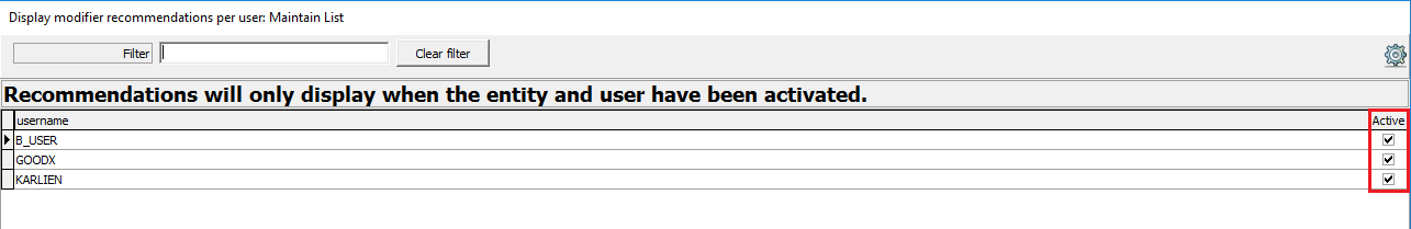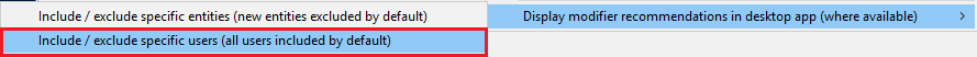 • From the Display modifier recommendations in the desktop-app (where available) drop-down, click on Include/exclude specific users (all users included by default)