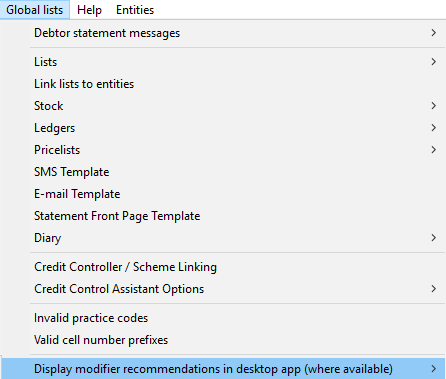 • From the sup menu, click on Display modifier recommendations in the desktop-app (where available)
