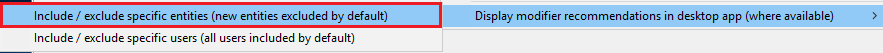 • From Display modifier recommendations in desktop app (where available) drop-down, click on Include / exclude specific entities (new entities excluded by default)