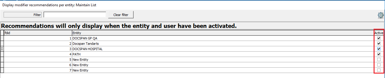 • A list of entities will appear, tick the box to activate or deactivate the right entities