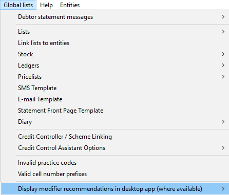 The desktop-app can be configured to display modifier billing suggestions on the modifier selection screen during the invoicing process.