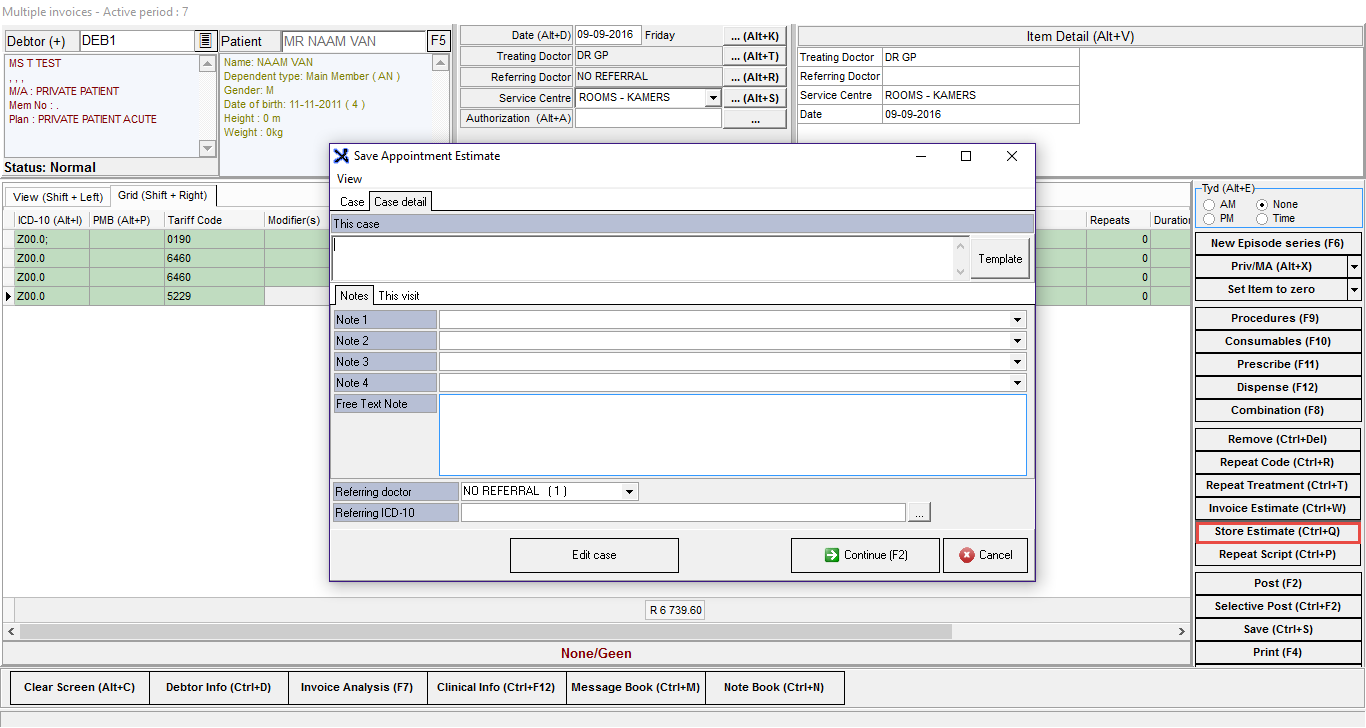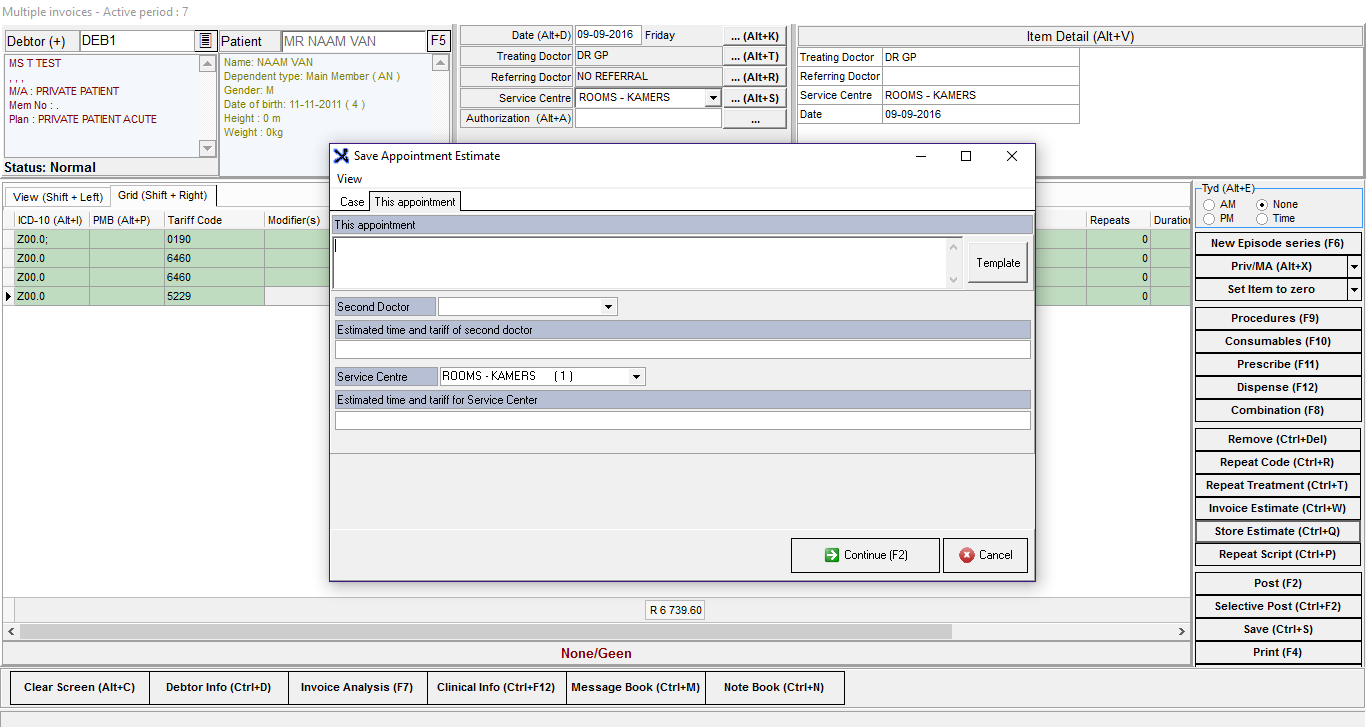 • The Estimated time and tariff of the second doctor can be entered if applicable