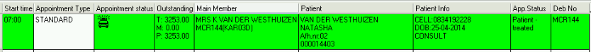- The Appointment will switch colours to indicate that the Patient is billed and submitted to the Medical Aid or Patient Liable.