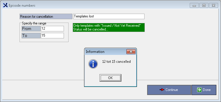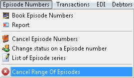 To cancel a arrange of Episodes, click on Episode Numbers on the menu bar and select Cancel range of appointments from the dropdown list