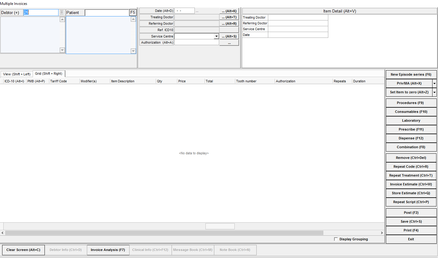 The Invoice function is used when a patient was seen by the practitioner or has been treated by the practitioner and must be billed for the treatment or consultation. This will post an invoice on the Main member's account.