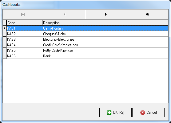 Select the applicable cash book