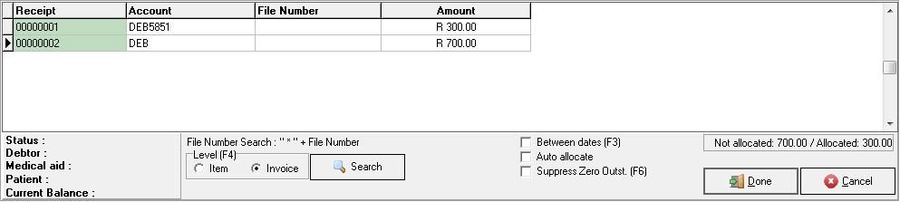 Repeat the process until all the amounts have been captured and the Balance = R0.00