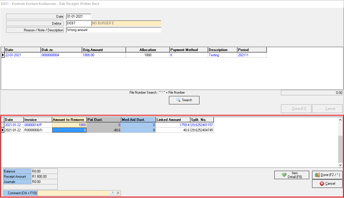 - Allocation: The amount that the user wants to write back. The amount will by default be the full amount that was paid by the patient and what needs to write back.