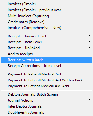 - Click on the correct transaction Period in which the receipt written back should be posted.