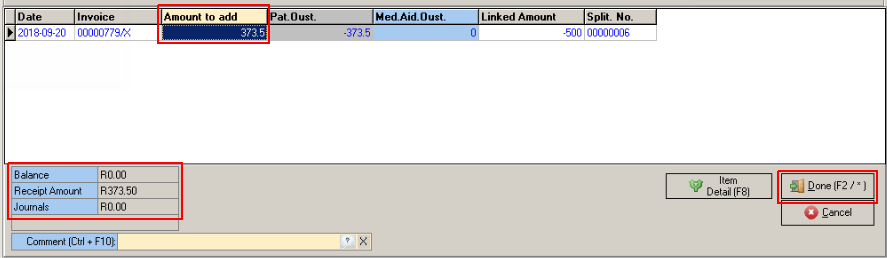 • At the bottom of the screen the "Balance / Receipt Amount and Journals" must be = R0.00.