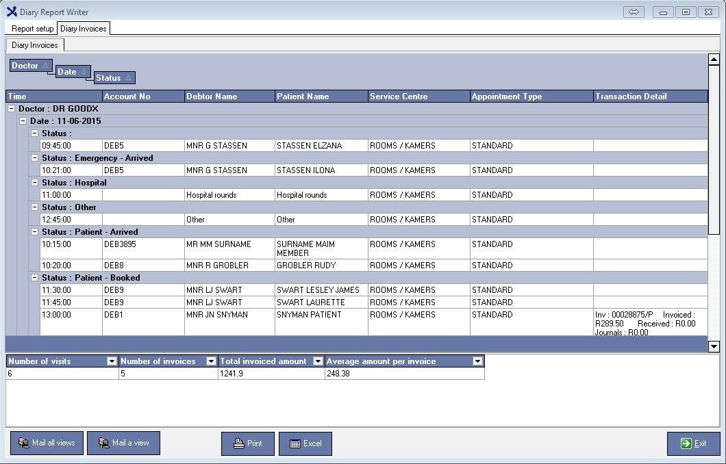 - To e-mail the Report, click on Mail all Views or Mail a View