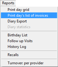 This Report can be used as a control sheet of the Number of Visits, Number of Invoices, Total Invoiced Amount and the Average Amount per Invoice.