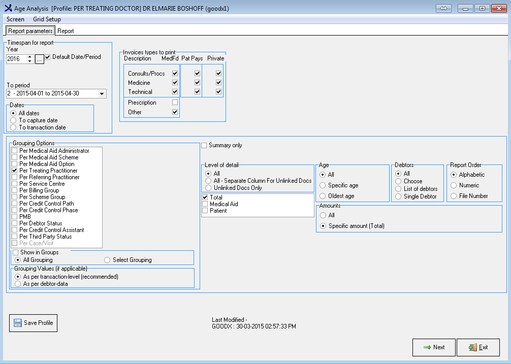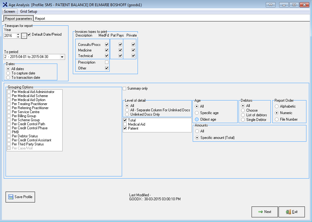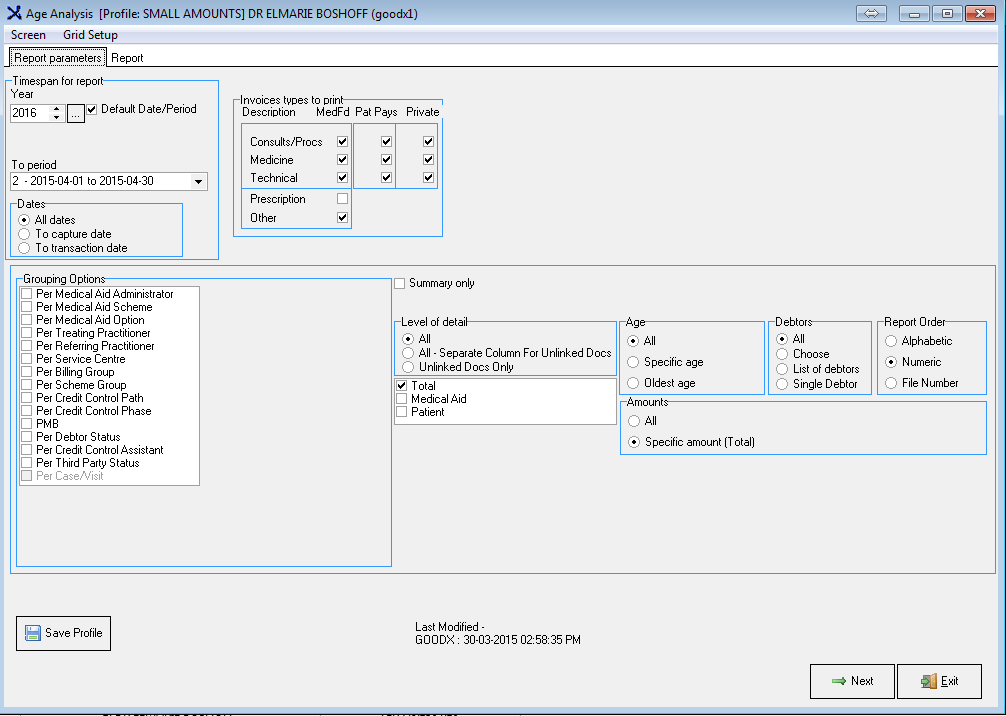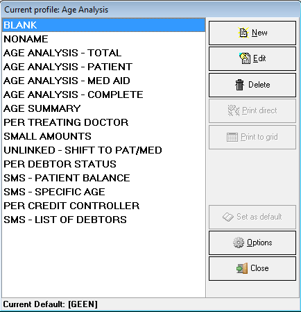 The Age Analysis Report indicates all the outstanding Accounts both Medical Aid and Patient outstanding Accounts depending on the Setup.