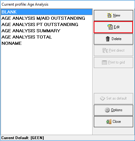 - An episode screen will appear, click on the correct Age analysis, click on the Edit button.