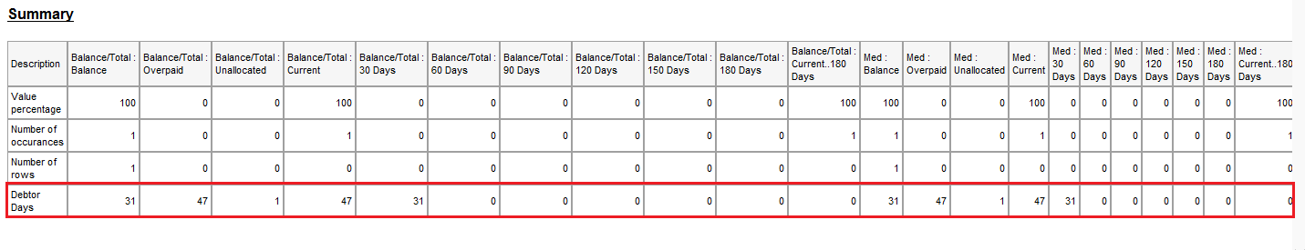 - From the print screen, the summary will appear at the bottom with the debtor days on.