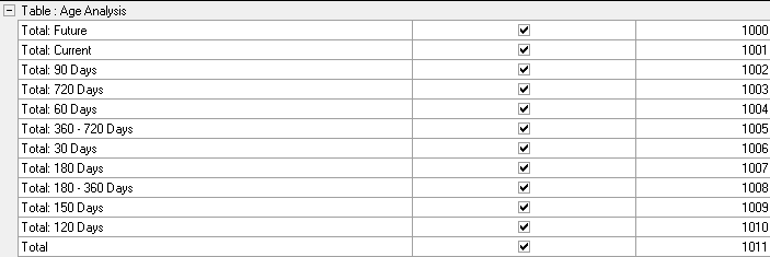 • Table: Age Analysis: The age of the outstanding debt that will be taken into consideration when the report is generated. The ages are calculated according to the date that the service was rendered to the Patient/Debtor (transaction date). The Age Analysis will indicate all the amounts still outstanding or not paid yet. This will be grouped into certain age groups for example Current (all transactions that are between 0 and 29 days), 30 Days (all transactions that are between 30 and 59 days outstanding), 60 Days (all transactions that are between 60 and 89 days outstanding) etc. The Age Analysis will also be divided into Total, Medical Aid and Patient outstanding on each invoice. The ages will be shown per debtor collectively with all their dependants and will not be shown separately.