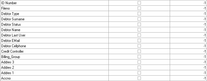 • Accno: The account number associated with the debtor's electronic file.