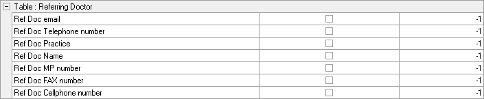• Table: Referring Doctor: All the information that relates to the details of the referring practitioner (the practitioner that suggested that the Patient consults with the treating practitioner) who is currently selected as the Referring Doctor on the Debtor/Patient file. The Referring practitioner's personal information will be generated from the List of Doctors. For more information on where the information is generated from, please refer to the user manual: Doctors: Master List