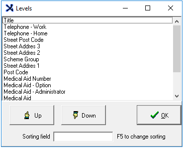 • Press the F5 key on the keyboard to change the sorting once the Sorting field has been entered.