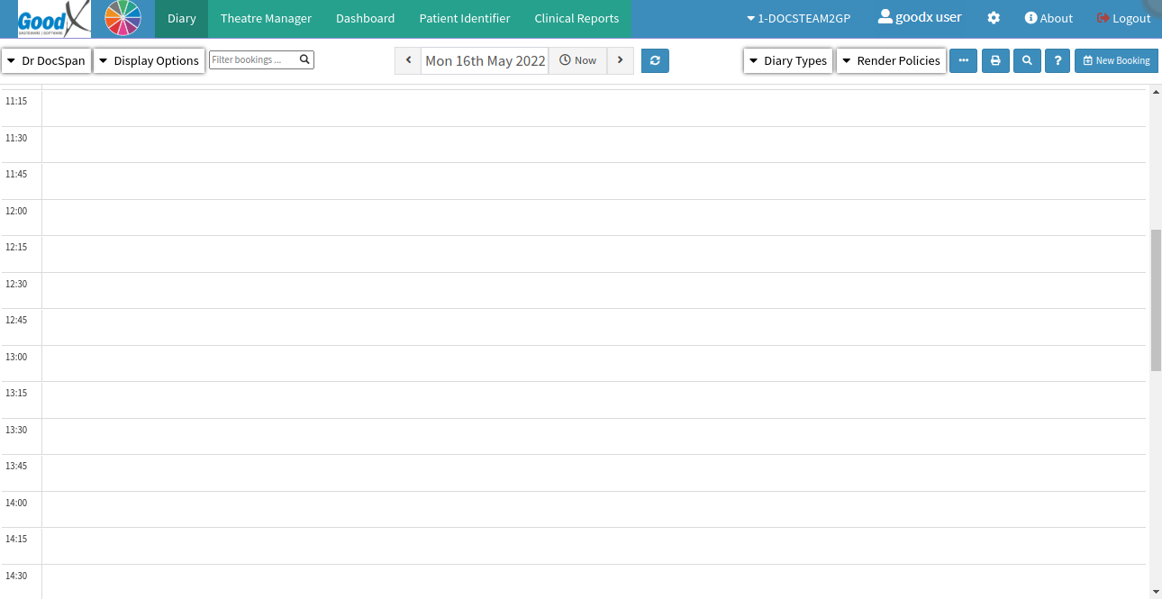 - The Diary screen will open once the login is successful, and the user will then be able to start working on the GoodX Web App.