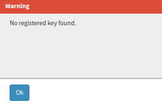 - If the Cancel button is Clicked, a Warning pop-up will then open stating that no registered key found.