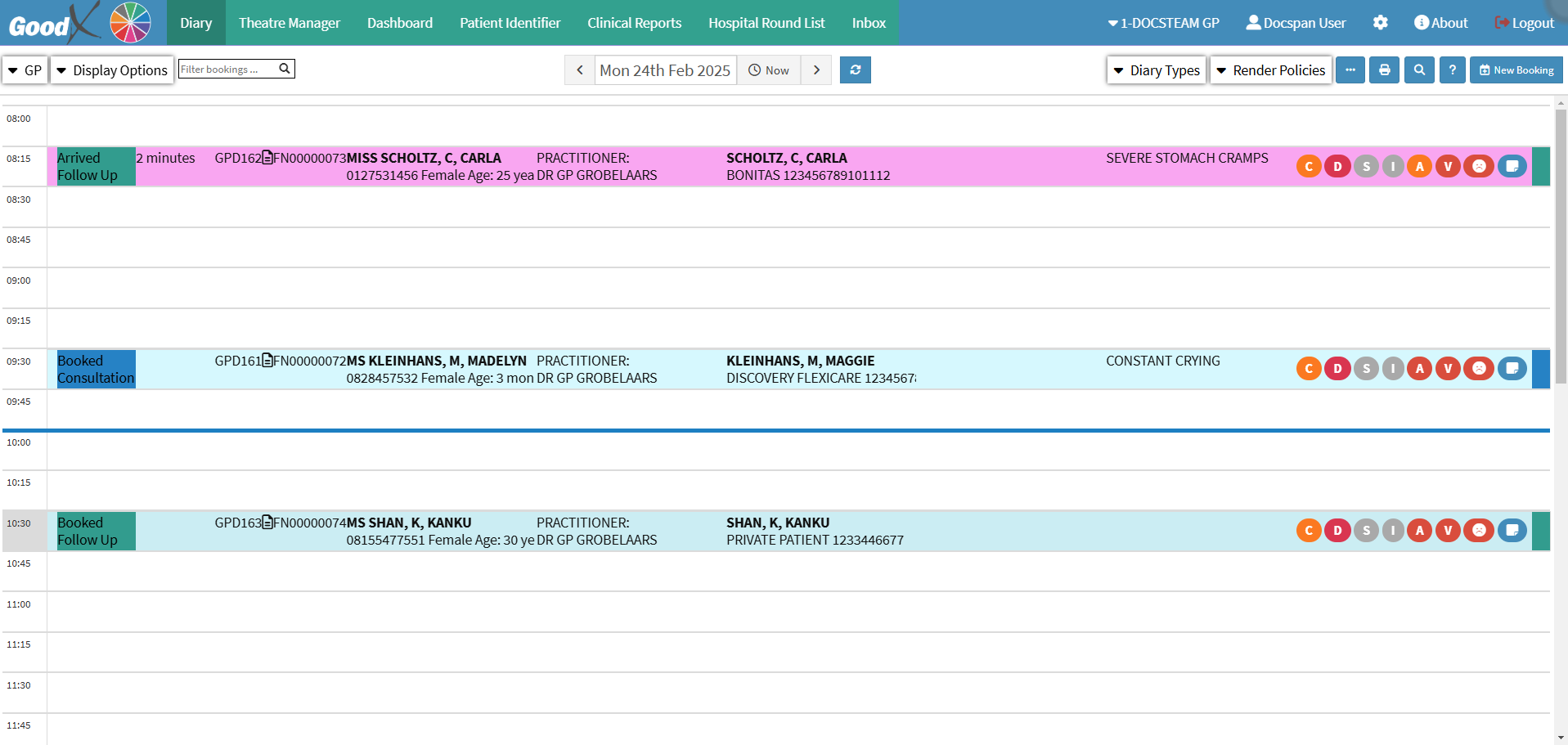 - The Practitioner List screen will open.